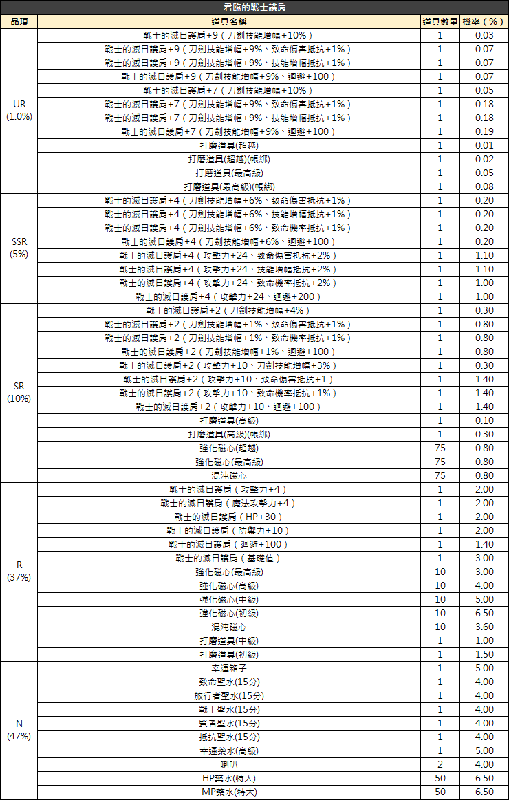 活動名稱:君臨的戰士護肩