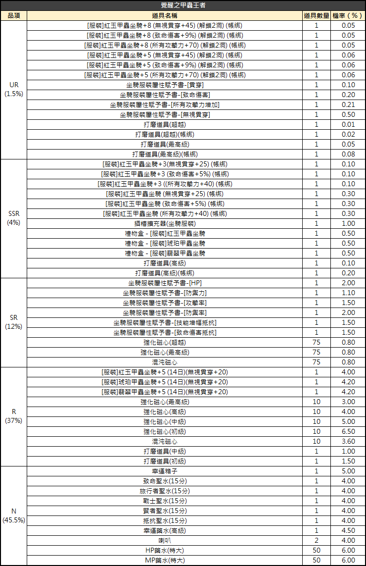 活動名稱:覺醒之甲蟲王者
