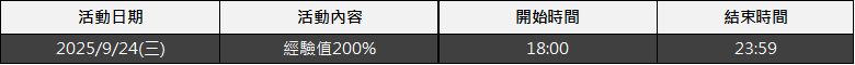 活動名稱:經驗200%加倍活動