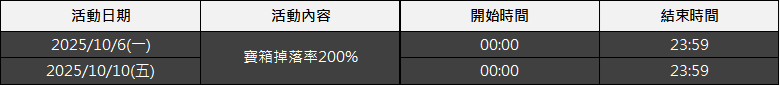 活動名稱:寶箱掉落率200%加倍活動