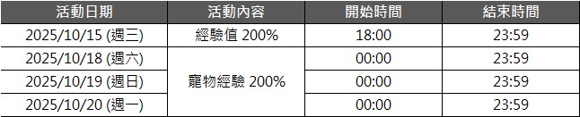 活動時間:2025/10/15 (三) 維護後~ 2025/11/4 (二) 23:59