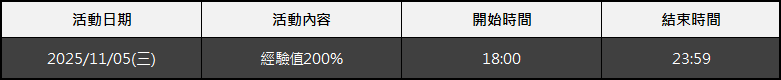 活動時間:2025/11/05 (三) 維護後~ 2025/11/18 (二) 23:59