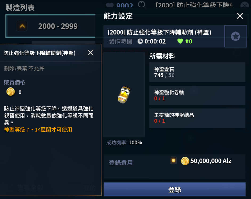 2. 開放製作商人克羅伊製作:防止強化等級下降輔助劑(神聖)