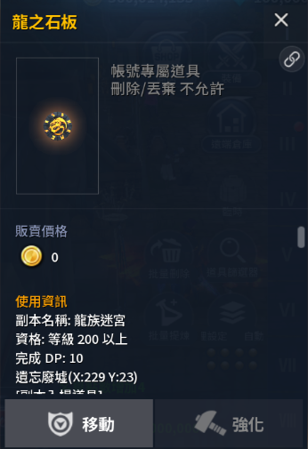 以下為本次期間限定活動怪中,低機率會掉落的稀有道具【龍之石板】的詳細資訊。