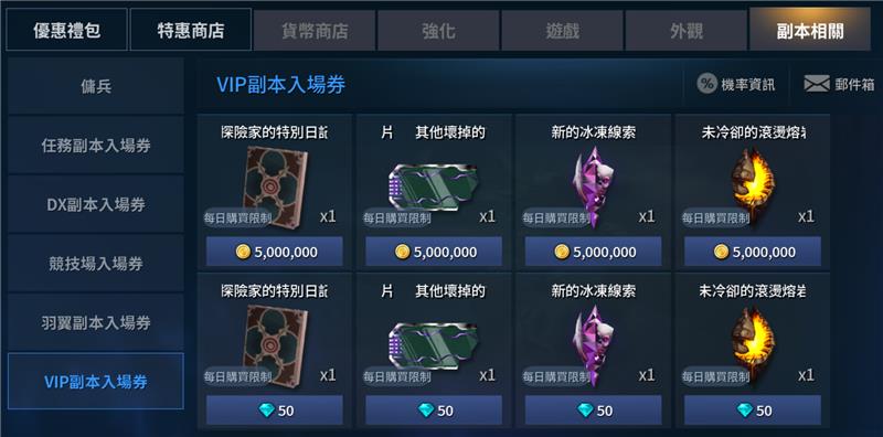 2. 於契約小鋪新增副本入場道具:新的冰凍線索、未冷卻的滾燙熔岩、其他壞掉的訓練卡片、探險家的特別日記