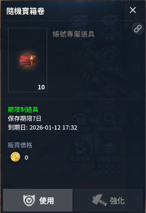 3. 隨機寶箱卷為帳號專屬道具。
