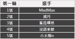 於下方列出新春馬年開運盃選手名單與輪次,請選手們於活動時間18:20,於頻道1暮色雨林主城水池集合。