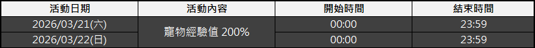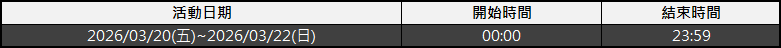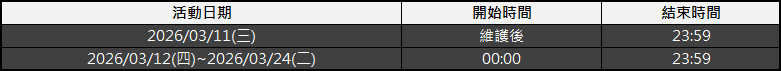 活動時間:2026/03/11(三)維護後 ~ 2026/03/24(二)23:59