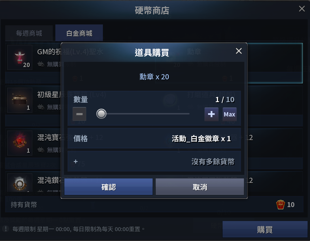 兌換位置: 由活動任務中進入硬幣商店,並於分頁中的【白金商城】分頁兌換