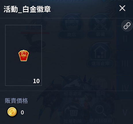 1. 白金徽章為非帳號綁定,可以於委託商店中販賣。